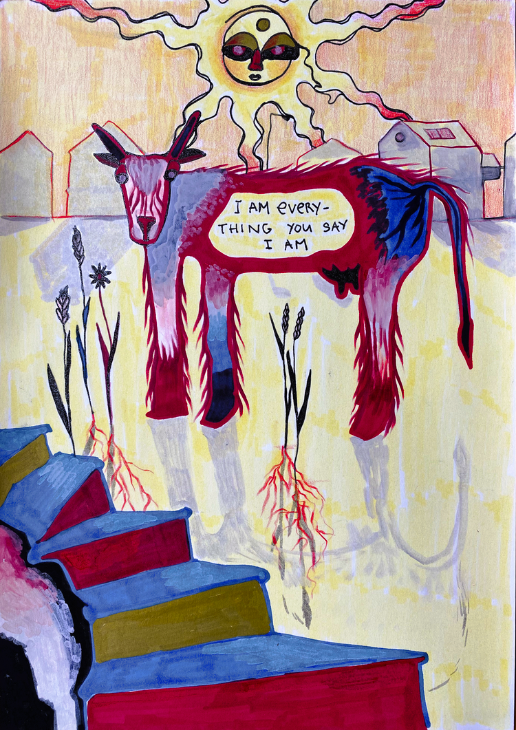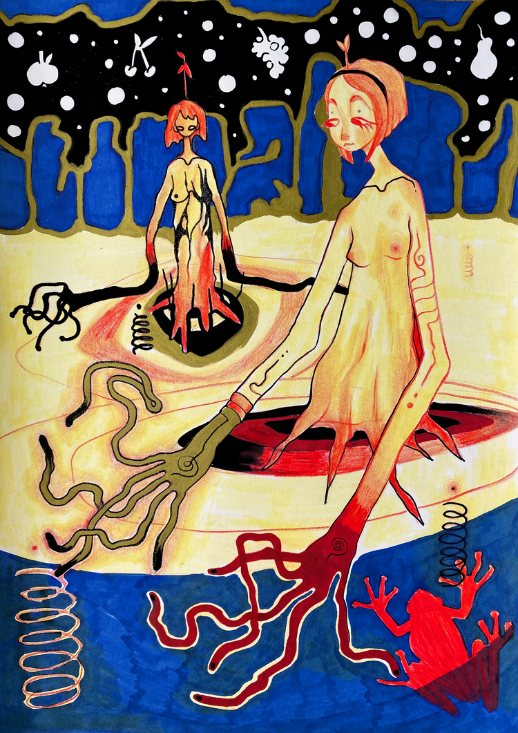 Phantasmagoria I is a series of illustrations I made on a whim using random supplies I had on my desk such as coloured pencils and whiteboard markers.